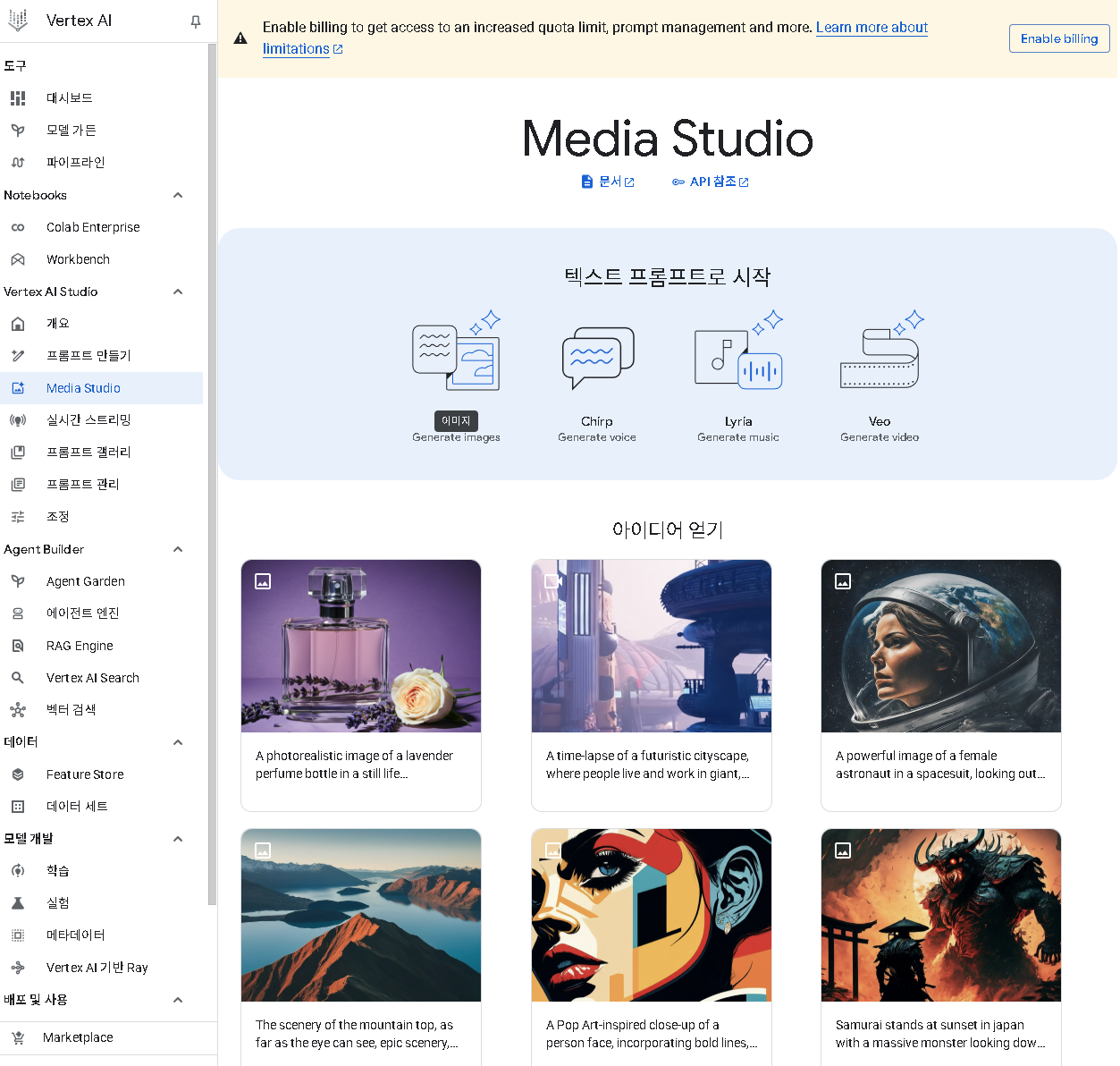 - [Google AI Studio / Vertex AI](링크-Google Vertex AI 공식 페이지): 주로 개발자나 기업 사용자를 위한 플랫폼입니다. API를 통해 Veo의 강력한 기능을 직접 활용하고, 자체 서비스와 연동할 수 있습니다. 조금 더 기술적인 이해가 필요하지만, 가장 폭넓은 제어와 활용이 가능합니다.